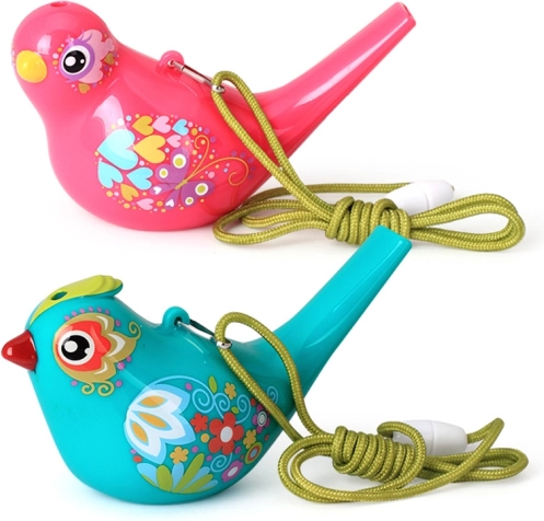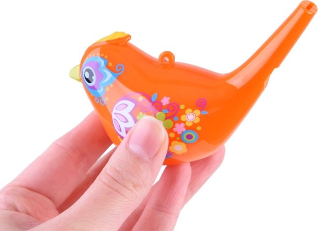 Tato vodní píšťalka ve tvaru ptáčka je lehká, odolná a ideální pro děti. Bez vody vydává čistý, jasný tón; po naplnění malým množstvím vody začne ptáček melodicky štěbetat. Hlasitost a výšku tónu snadno ovlivníte množstvím vody a silou fouknutí.