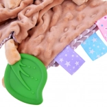 Zelený silikonový lístek jemně masíruje bolavé dásně při prořezávání zoubků.