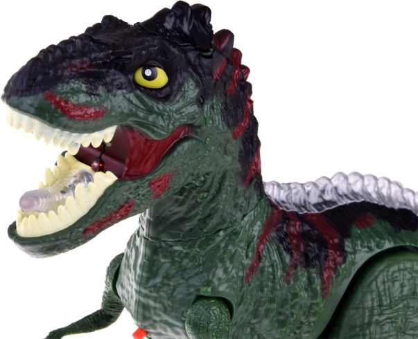 RC dinosaurus zvládne chůzi vpřed i vzad, otáčení o 360°, řev i zábavné taneční režimy s hudbou. Po dolití vody do nádržky v hlavě se z tlamy vyvalí studená pára nasvícená červeným LED, která vypadá jako žhavý oheň – bezpečně a bez zápachu.
