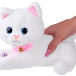 Interaktivní bílá kočka je perfektní společník pro malé chovatele. Má velké modré oči, růžovou mašličku se zvonečkem a hebký plyš, který přímo vybízí k mazlení. V bříšku ukrývá dvě malá koťátka a v balení nechybí ani růžová lahvička pro hraní na krmení.