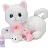 Interaktivní plyšová kočka s koťátky a lahvičkou – Bílá