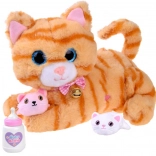 Roztomilá interaktivní kočka s dvěma koťátky a lahvičkou přináší hodiny zábavy i uklidňujícího mazlení. Díky funkcím jako nahrávání a přehrávání, mňoukání a předení, melodie a písničky a reakce na hlazení a krmení se děti naučí pečovat a rozvíjet fantazii. Koťátka jsou ukrytá v bříšku maminky a hračka je vyrobena z měkkého, příjemného plyše.