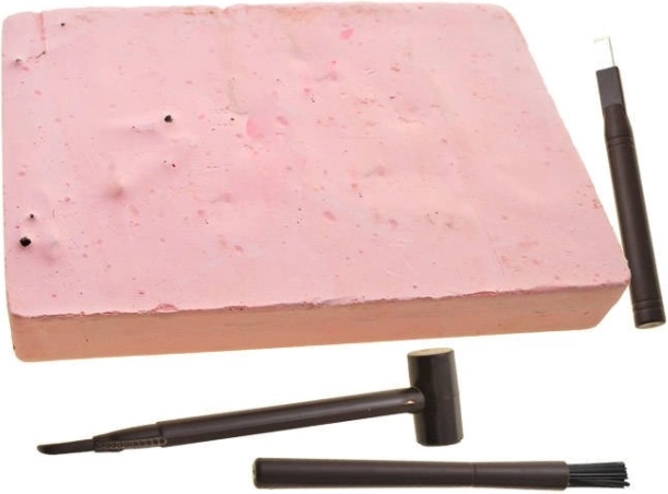 - Kompletní výbava: blok, kladívko se škrabkou, dlátko a štětec