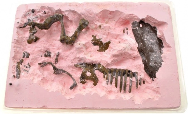 - Gipsový výkopový blok, štětec, dlátko, kladívko se škrabkou, díly kostry, podstavec