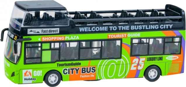 Stylový kovový patrový autobus potěší malé řidiče i cestující. Díky mechanismu pull-back, otevíracím posuvným dveřím, světelným efektům a zvukům motoru přináší realistickou zábavu doma i na cestách. Kovová karoserie a pečlivé zpracování zajišťují odolnost a dlouhou životnost hračky.