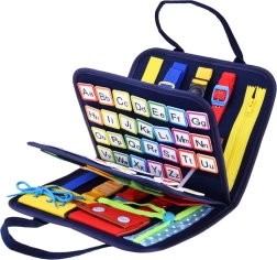 Dětská textilní knížka s aktivitami je ideálním nástrojem pro rozvoj jemné motoriky u dětí. Nabízí množství různých aktivit včetně zapínání zipů, knoflíků a přezek, které posilují motorické schopnosti. Děti se skrze hru učí rozpoznávat barvy, tvary, písmena a čísla. Díky své měkké textilní konstrukci je knížka bezpečná a zároveň atraktivní díky barevným designům s dinosaury.