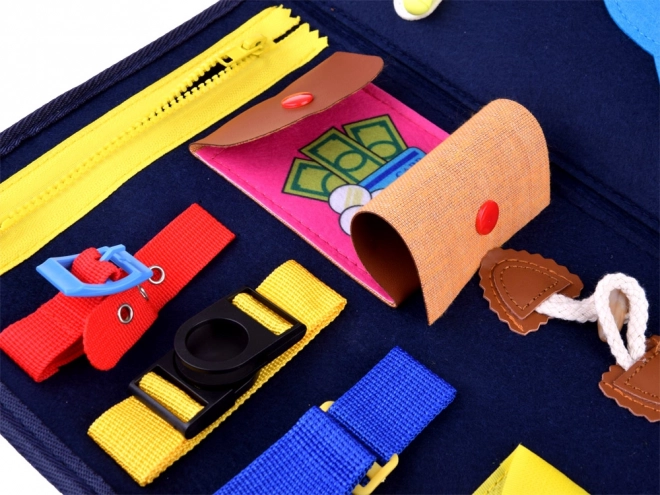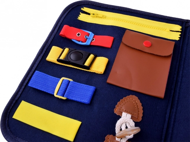 Knížka nabízí různé druhy zapínání jako zipy, knoflíky a přezky, které pomáhají rozvíjet jemnou motoriku.