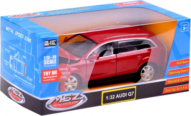 Objevte detailně zpracovaný model AUDI Q7, který přináší opravdový zážitek ze hry. Po stisknutí či otevření dveří se aktivují světla a zvuky – od klaksonu přes start motoru až po rytmicky blikající osvětlení. Díky pull back systému stačí autíčko natáhnout dozadu a pustit – samo se rozjede.
