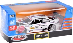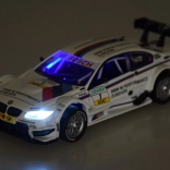 Tento precizně zpracovaný závodní vůz s licencovaným vzhledem BMW M Performance přináší realistické detaily, gumová kola a plastový podvozek pro odolnost při hraní. Po otevření dveří uslyšíte zvuk odemykání, přítlakem na karoserii se spouští start a běh motoru. Svítí přední i zadní světla a podsvícená palubní deska, takže každá jízda vypadá jako na skutečné trati DTM.