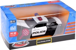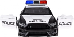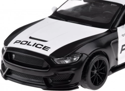Udělejte radost malým i velkým fanouškům aut modelem policejního vozu Ford Mustang Shelby GT350. Kovová karoserie v černo‑bílé kombinaci s nápisy POLICE, funkční otevírací dveře a blikající majáky dodávají hračce autentický vzhled. Po stisknutí nebo otevření dveří se aktivují světla a siréna, takže zážitek z hraní je ještě realističtější.