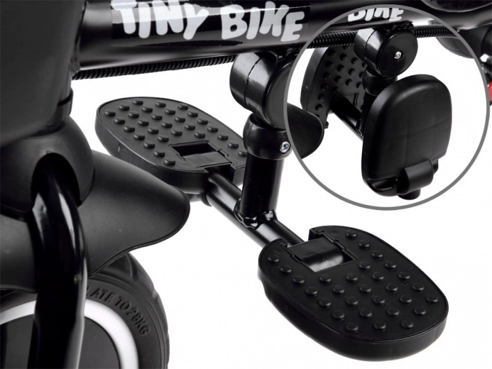 Spojené řízení s nastavitelnou rukojetí umožňuje dospělému plnou kontrolu. Zadní dvojité brzdy stabilně zafixují tříkolku při zastavení.