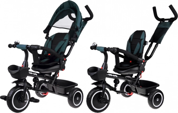 Dětská tříkolka 3v1 s otočným sedadlem a stříškou TINY BIKE – Tmavě zelená