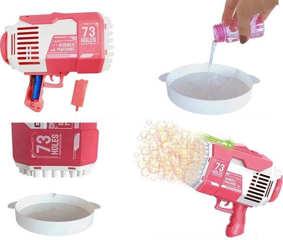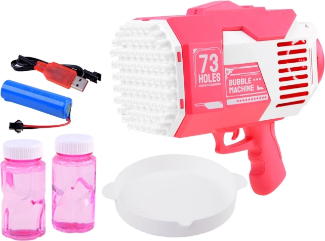 Tato elektrická pistole na bubliny vytváří během okamžiku tisíce duhových bublinek. Stačí nalít roztok do misky, ponořit ústí pistole a stisknout spoušť. Díky napájení z dobíjecího akumulátoru přes USB je hračka vždy připravena k akci a šetří výměnu baterií.
