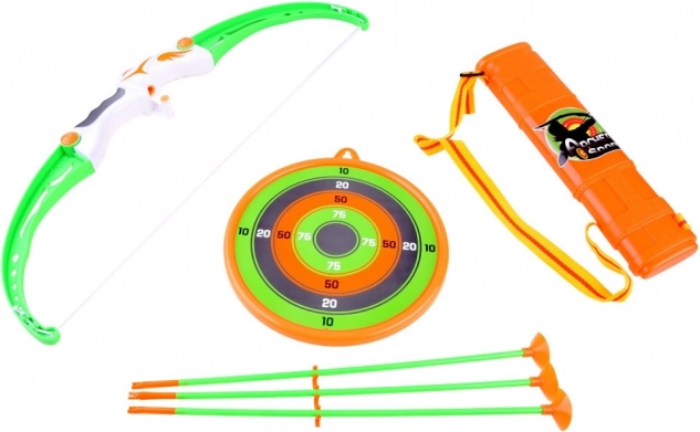 Kompletní výbava pro okamžité hraní: lehký luk, 3 šípy a praktický toulec pro snadné přenášení.