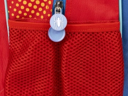 Hlavní přihrádka s přední kapsou na zip a boční síťovanou kapsou usnadňuje organizaci školních potřeb.