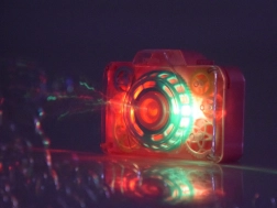 Průhledná přední část odhaluje barevná ozubená kola, která se při provozu otáčejí a podněcují dětskou zvídavost i rozvoj smyslů. Ergonomický tvar je uzpůsoben malým ručkám, aby bylo ovládání jednoduché a bezpečné.