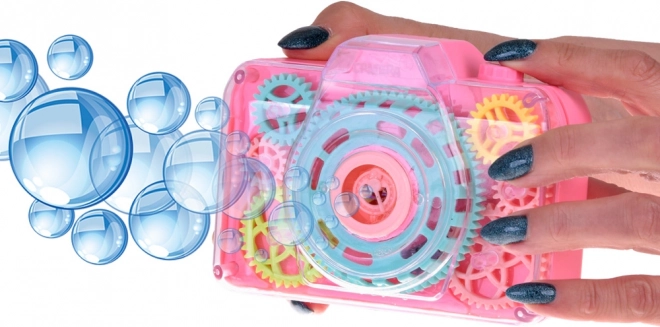 Tento hravý bublinkový fotoaparát přináší dětem magický efekt bublin spojený s realistickým prožitkem fotografování. Po stisku spouště se spustí světelné efekty, zvuk závěrky a z otvoru se vyfukují mýdlové bubliny, které vytvářejí okouzlující atmosféru při hře doma i venku.