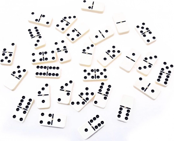 Domino je logická hra, kde se používají destičky zvané kámeny. Každý kámen je rozdělen na dvě čtvercová pole s označenými puntíky, podobně jako kostka na házení. Tato nejpopulárnější verze obsahuje 28 kamenů s kombinacemi čísel od 0 do 6. Hra je navržena pro 2 až 4 hráče. Perfektní pro rodinné večery a setkání s přáteli.