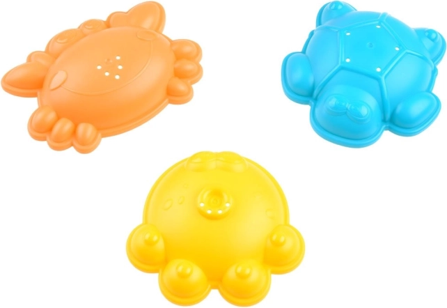 Tři formičky s motivy kraba, želvy a chobotnice zajistí spoustu zábavy. Každá má otvory pro snadné uvolnění písku.