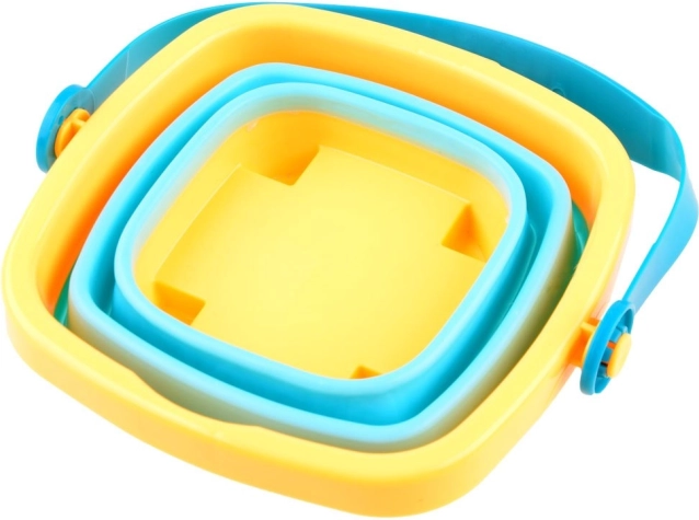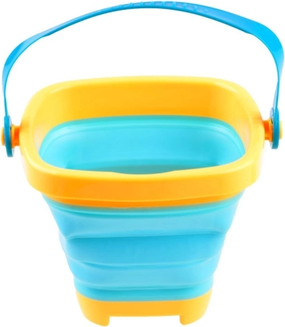 Díky použití flexibilního silikonu na stěnách a tvrdšího plastu na dně a okrajích lze kbelík snadno složit po skončení hraní. Zabere méně místa a snadno se přenáší a skladuje. Formičky mají malé otvory, takže je lze použít i jako kelímky na vodu.
