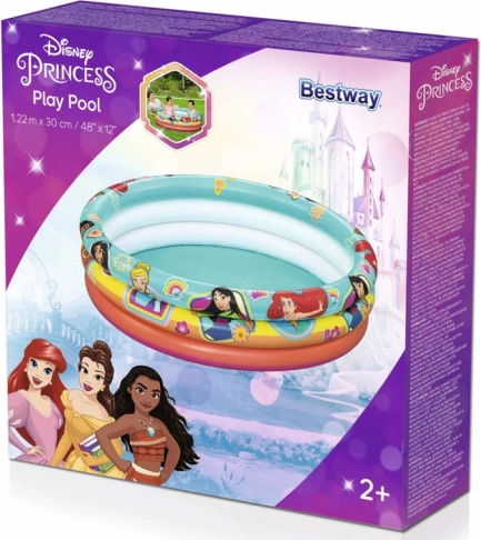 Rozkošný nafukovací bazének Bestway s motivem DISNEY PRINCESS potěší všechny malé princezny. Kompaktní rozměry 122 × 30 cm, měkké nafukovací dno a 3 samostatné komory zajistí pohodlí i stabilitu. Odolné PVC a kouzelné potisky s oblíbenými postavičkami promění každé odpoledne na letní vodní zábavu na zahradě či terase.
