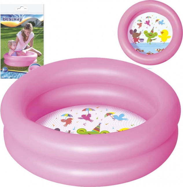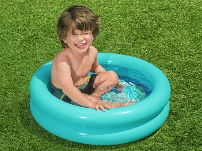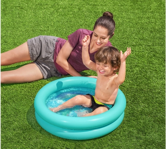 Modré kulaté brouzdaliště - nafukovací bazén o rozměrech 61 cm x 15 cm je výrobek určený pro batolata. Bazén je vyroben z odolného vinylového materiálu, má dvě vzduchové komory a bezpečnostní ventil, který zabraňuje úniku vzduchu. Skládá se ze 2 nafukovacích prstenců, z nichž každý se nafukuje samostatně. Dno bazénku je potištěno veselými zvířátky, která zpříjemní každé koupání. Objem brouzdaliště je 21 litrů s doporučenou úrovní naplnění 75 %. Jeho malé rozměry a hmotnost vám umožní vzít si ho kamkoli s sebou, na pláž, na trávník na zahradě nebo na prázdninový výlet.