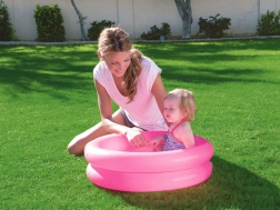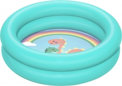Modré kulaté brouzdaliště - nafukovací bazén o rozměrech 61 cm x 15 cm je výrobek určený pro batolata. Bazén je vyroben z odolného vinylového materiálu, má dvě vzduchové komory a bezpečnostní ventil, který zabraňuje úniku vzduchu. Skládá se ze 2 nafukovacích prstenců, z nichž každý se nafukuje samostatně. Dno bazénku je potištěno veselými zvířátky, která zpříjemní každé koupání. Objem brouzdaliště je 21 litrů s doporučenou úrovní naplnění 75 %. Jeho malé rozměry a hmotnost vám umožní vzít si ho kamkoli s sebou, na pláž, na trávník na zahradě nebo na prázdninový výlet.