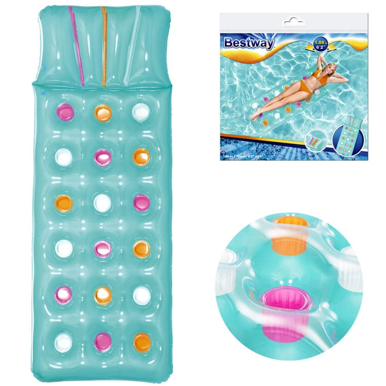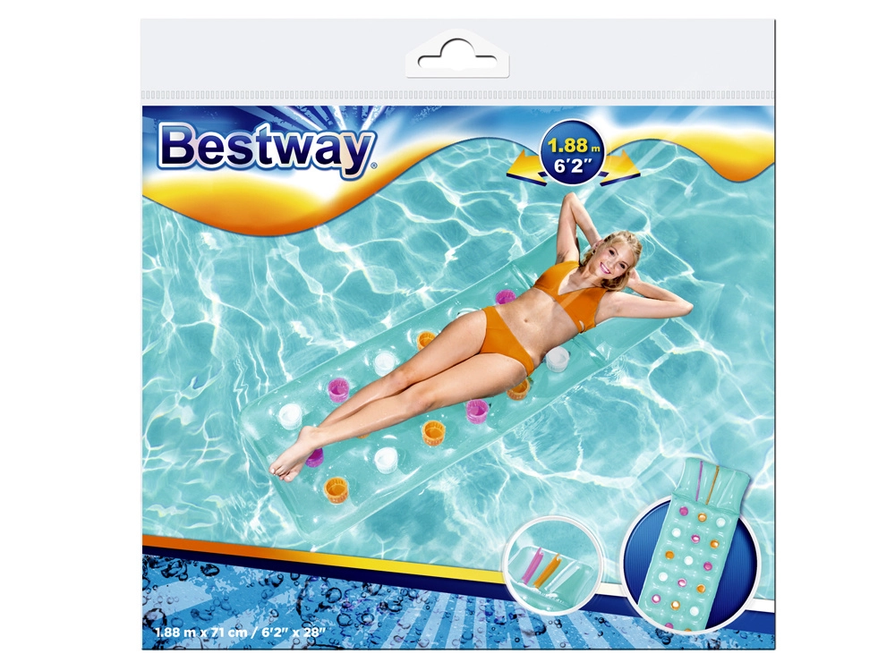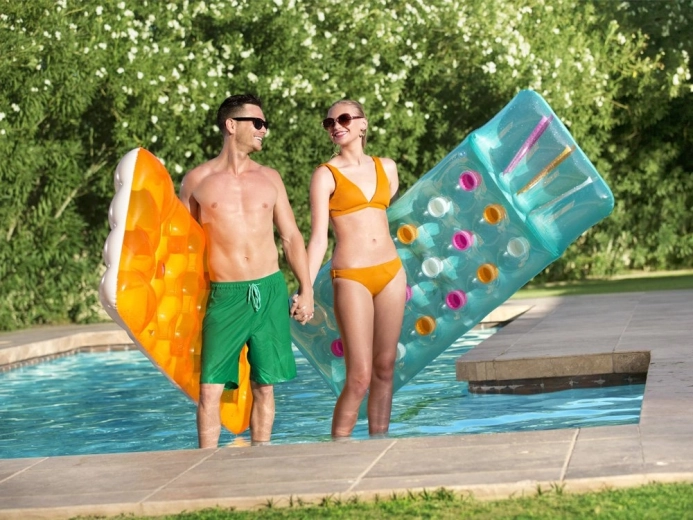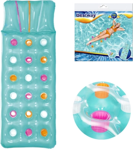 Užijte si léto naplno s nafukovací matrací BESTWAY s integrovaným polštářem. Nabízí pohodlné ležení, stabilní konstrukci z odolného PVC a nosnost až 90 kg. Barevný design rozzáří každý bazén i pláž a díky kompaktním rozměrům ji snadno vezmete kamkoli.