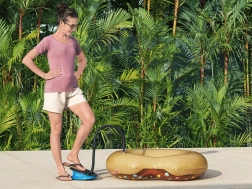 Snadno přepnete mezi režimem INFLATE/DEFLATE, takže vzduch nejen doplníte, ale i rychle vypustíte. Pumpu lze ovládat nohou i rukou – nožní použití je přitom pohodlné a rychlé, což oceníte na pláži, u jezera i na zahradě.