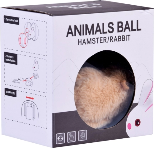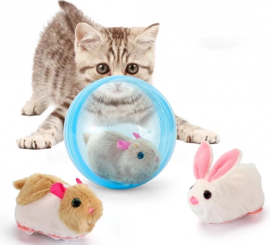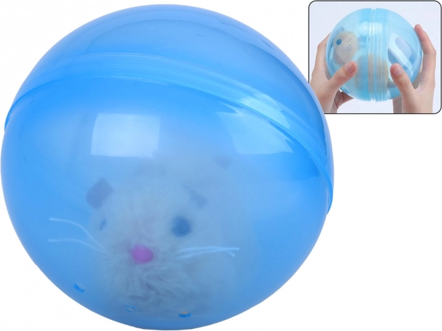Křeček se v průhledné modré kouli spontánně pohybuje, což přirozeně láká děti k pozorování a kočky či psy ke hře.