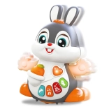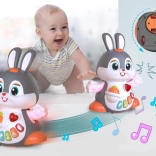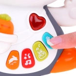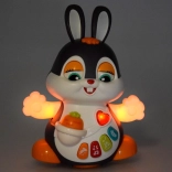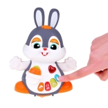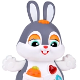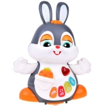 Tlačítka na bříšku přehrávají veselé melodie, tlukot srdce, zvuky skákání i křupání mrkvičky. Světýlka blikají do rytmu a podporují smyslový rozvoj.