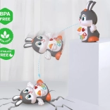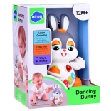 Interaktivní tančící králíček je skvělým společníkem pro první krůčky a lezení. Po stisknutí startu se veselý králíček rozjede, mrká očima, pohybuje tlapkami a jeho srdíčko i tlapky blikají do rytmu hudby. Děti zaujmou světelné efekty, melodie a různé zvuky zvířátka a přírody, které podněcují k aktivní hře.