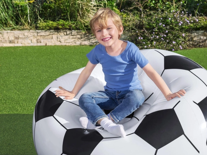 Nafukovací křeslo 'Fotbal' je perfektní místo k relaxaci. Je ideální pro sledování zápasů, hraní her nebo čtení knih. Měkký povrch zajišťuje komfort po dlouhou dobu.