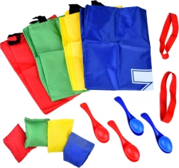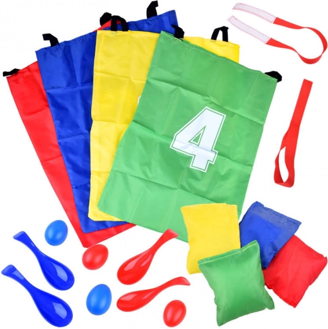Čtyři odolné nylonové pytle (66 × 50 cm) s čísly a pevnými uchy jsou ideální pro rychlé závody i týmové soutěže. Podporují kondici, rovnováhu a zdravý pohyb na čerstvém vzduchu.