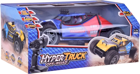Terénní auto na dálkové ovládání HYPER TRUCK v měřítku 1:14 přináší akční zábavu na každém povrchu. Díky měkkým gumovým kolům, účinnému odpružení a ovládání 2,4 GHz nabídne plynulou jízdu i přesné zatáčení. Nabíjecí akumulátor 7,4 V 500 mAh zajistí dlouhou výdrž a spoustu radosti z jízdy.