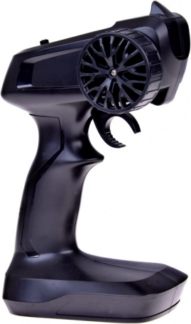Ergonomický pistolový ovladač s přesnou spouští umožní plynulý rozjezd, brzdu i zatáčení. Frekvence 2,4 GHz dovolí jízdu více aut současně.