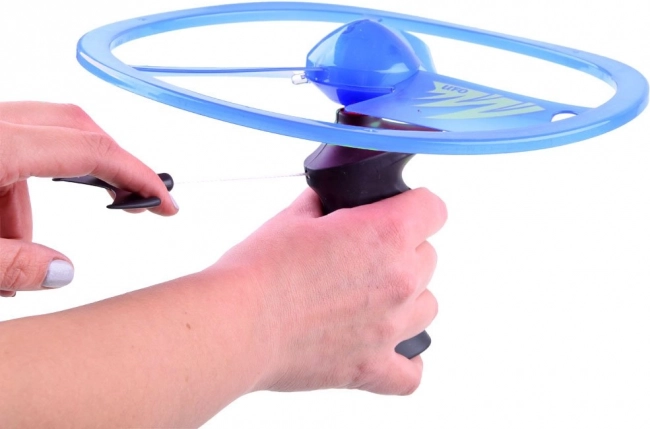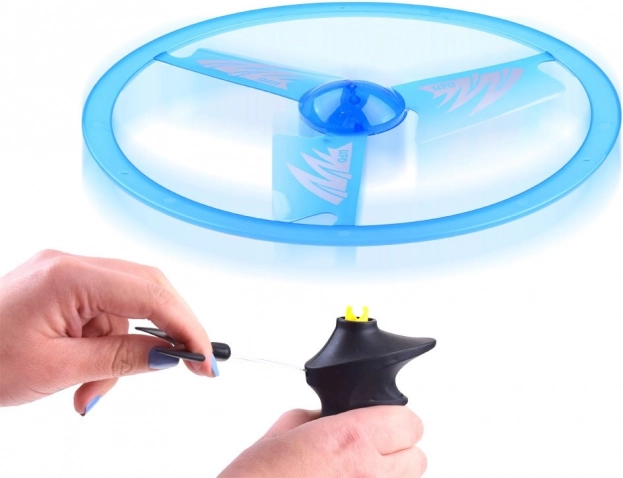 Ovládání je snadné: nasadíte disk na rukojeť, zatáhnete za šňůrku a sledujete, jak se vrtule vznese. Odolný plast a aerodynamický design pomáhají stabilnímu letu a opakovanému používání.