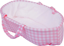Lehký textilní košík s uchy je barevně sladěný s oblečením panenky a usnadňuje přenášení i ukládání hračky.