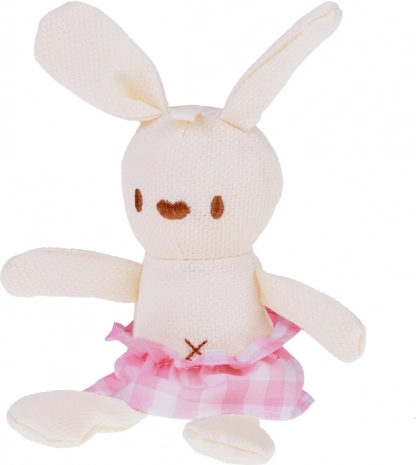 Součástí sady je hebký králíček v kostkované sukýnce – ideální kamarád pro mazlení i fantazijní hry.