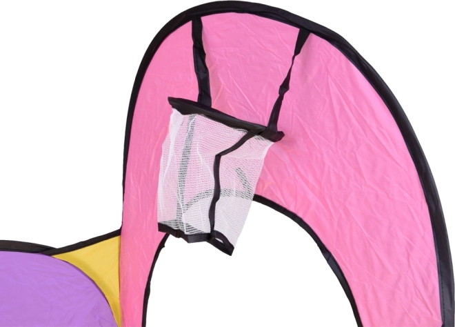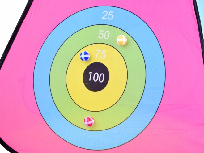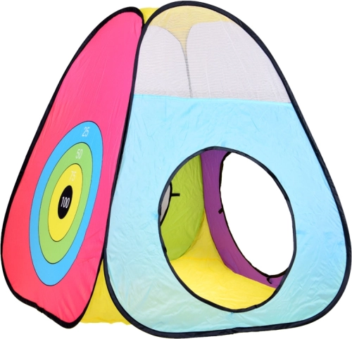 Trojúhelníkový stan s barevným terčem a otvory pro trefování rozvíjí přesnost a motoriku. Skvělá soutěžní zábava pro malé střelce.