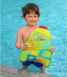 Deska o rozměrech 42x32x35 cm má ergonomický tvar. Bylo vyrobeno z odolné pěny s vynikajícím vztlakem. Navíc bylo potaženo látkou s barevnou grafikou, která zajišťuje pohodlné uchopení a zabraňuje vyklouznutí z rukou. Vhodné pro děti od 3 do 6 let.