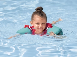 Vesta je vyrobena z materiálů, které jsou příjemné pro dětskou pokožku a zajišťují komfort během plavání.