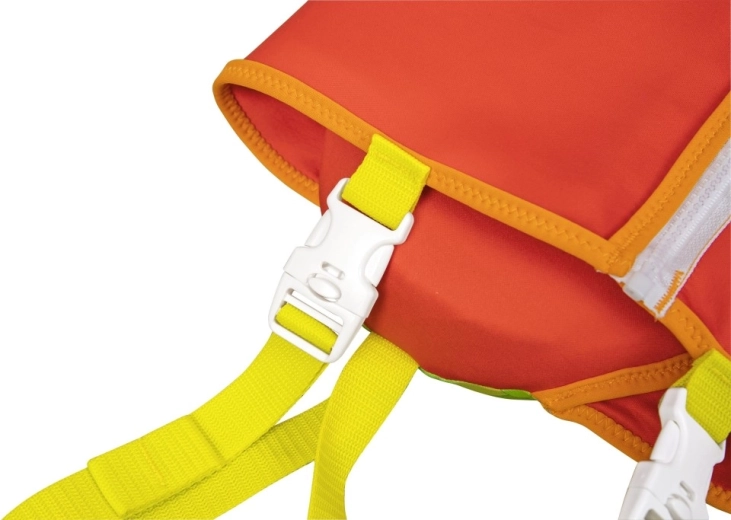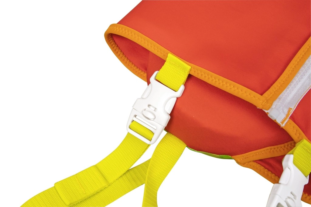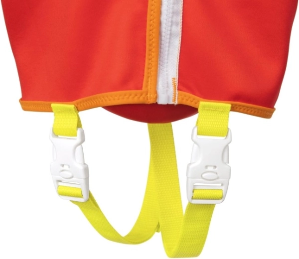 Velká opěrka hlavy pomáhá udržet hlavu dítěte nad hladinou, nastavitelné popruhy s rychloupínacími sponami a rozkrokový popruh zajistí pevné a bezpečné usazení. Praktické zadní držadlo umožní dítě snadno přidržet či rychle vytáhnout z vody.