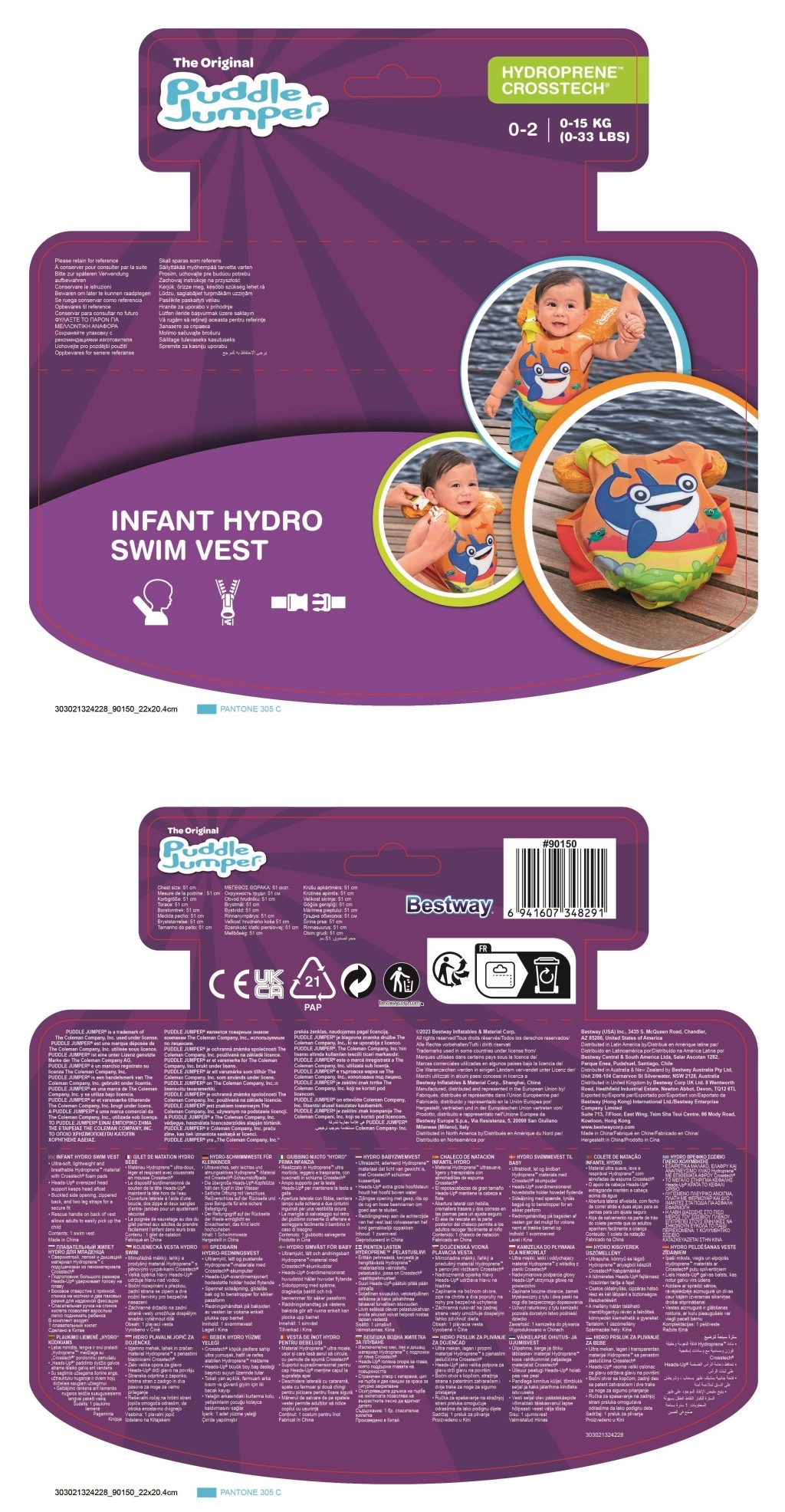 Tato kojenecká plovací vesta Puddle Jumper byla navržena pro maximální pohodlí a klid rodičů. Měkký, prodyšný materiál a pěnová konstrukce zajišťují příjemné nošení, zatímco kontrastní, výrazné barvy zvyšují viditelnost dítěte u vody.