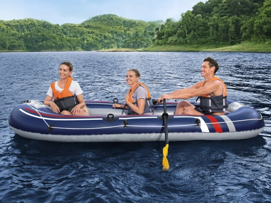 Pohodlí při používání zajistí tříkomorová konstrukce, nafukovací podlaha a nafukovací sedáky. Ponton má navíc bezpečnostní lano se zabudovanými průchodkami po celém obvodu.