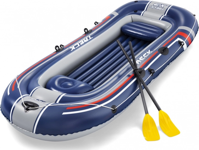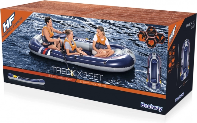 Sada Ponton Hydro Force TRECK X3 SET od renomované společnosti Bestway je ideální pro příznivce rekreačního plavání na větších vodních plochách. Díky svým rozměrům 307 cm x 126 cm se do něj bez problémů vejdou tři dospělí a jedno dítě. Ponton nejvyšší kvality je vyroben z odolného, testovaného PVC materiálu.