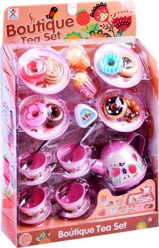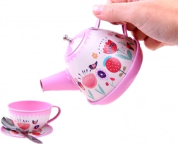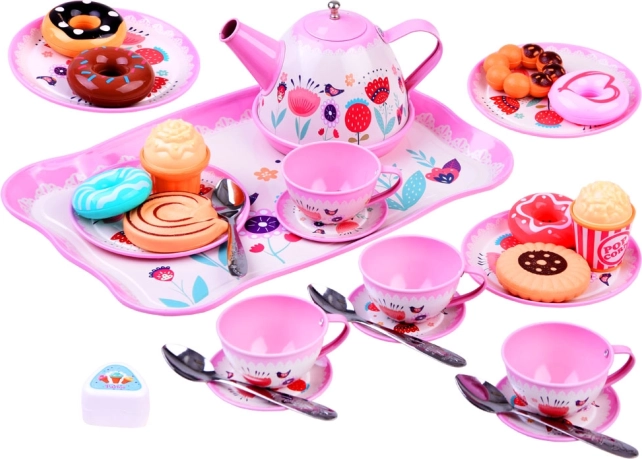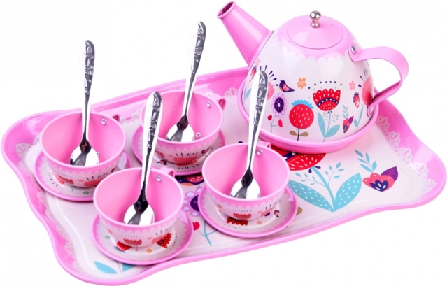 Souprava je jako stvořená pro malé hostitele, kteří chtějí servírovat čaj panenkám a plyšákům. Pastelové barvy a roztomilé květinové motivy působí kouzelně, zatímco kovová konstrukce zajišťuje dlouhou životnost i při každodenním hraní.