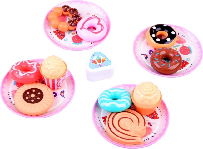 Barevné donuty, cupcakes a sušenky rozvíjejí fantazii, slovní zásobu a sociální dovednosti při hře na kavárnu nebo cukrárnu.