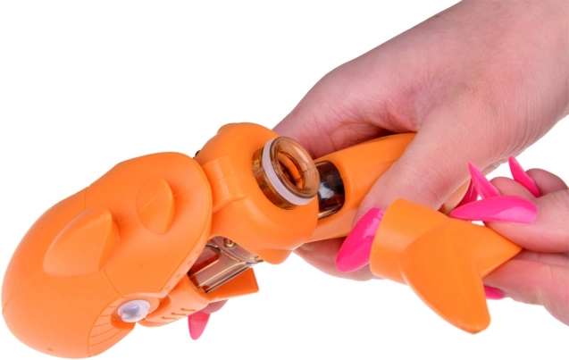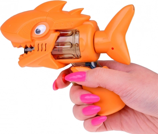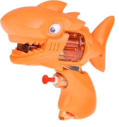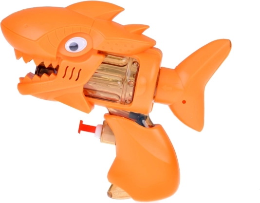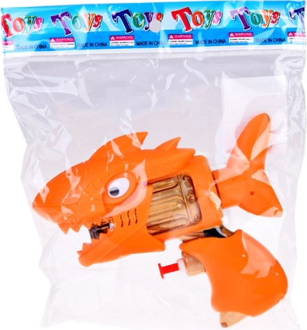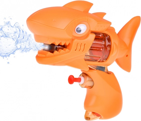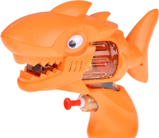 Tato kompaktní vodní pistole ve tvaru oranžového žraloka je vyrobená z hladkého, na dotek příjemného plastu a je ideální pro letní radovánky. Děti ocení hravý vzhled s ploutvemi, zoubky a výrazným okem, které se při pohybu vesele pohupuje. Díky průhlednému zásobníku mají malí střelci neustálý přehled o zbývající vodě.