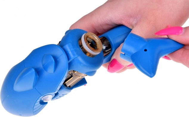 Ovládání je maximálně snadné: stačí odšroubovat ocas, nalít vodu do zásobníku, znovu uzavřít a stisknout červenou spoušť. Průhledný zásobník umožňuje dětem kdykoli zkontrolovat, kolik vody zbývá. Pohyblivé oči žraloka dodávají hračce zábavný efekt při každém pohybu.